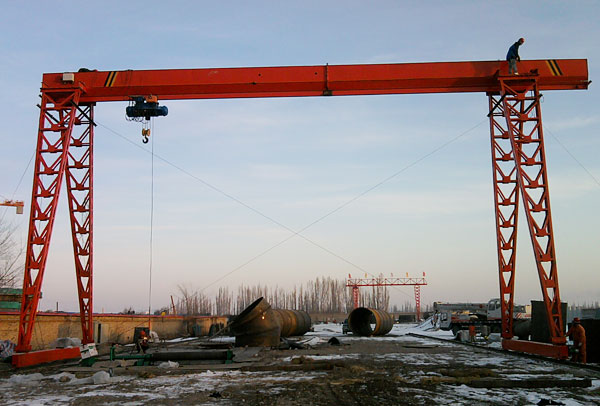 2.半門式起重機:支腿有高低差,可根據使用場地的土建要求而定。